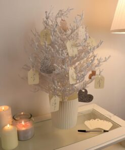 Create your very own winter wonderland in your own home, workplace or Christmas event with our snowy twig tree! The perfect glittery decoration on its own or add a range of decorations to add that extra bit of festive cheer. The tree measures 60cm (24″) and comes decorated with flocked snow, fine and chunky iridescent glitter and a removable hollow plastic base. The perfect size for any table top indoors or fill the base with stones and add a touch of sparkle to your outdoor décor. Designed and manufactured exclusively for Christmas Concepts.