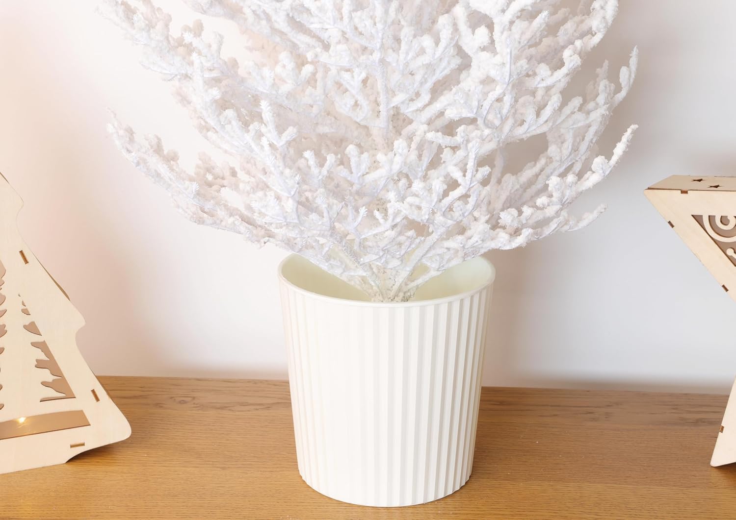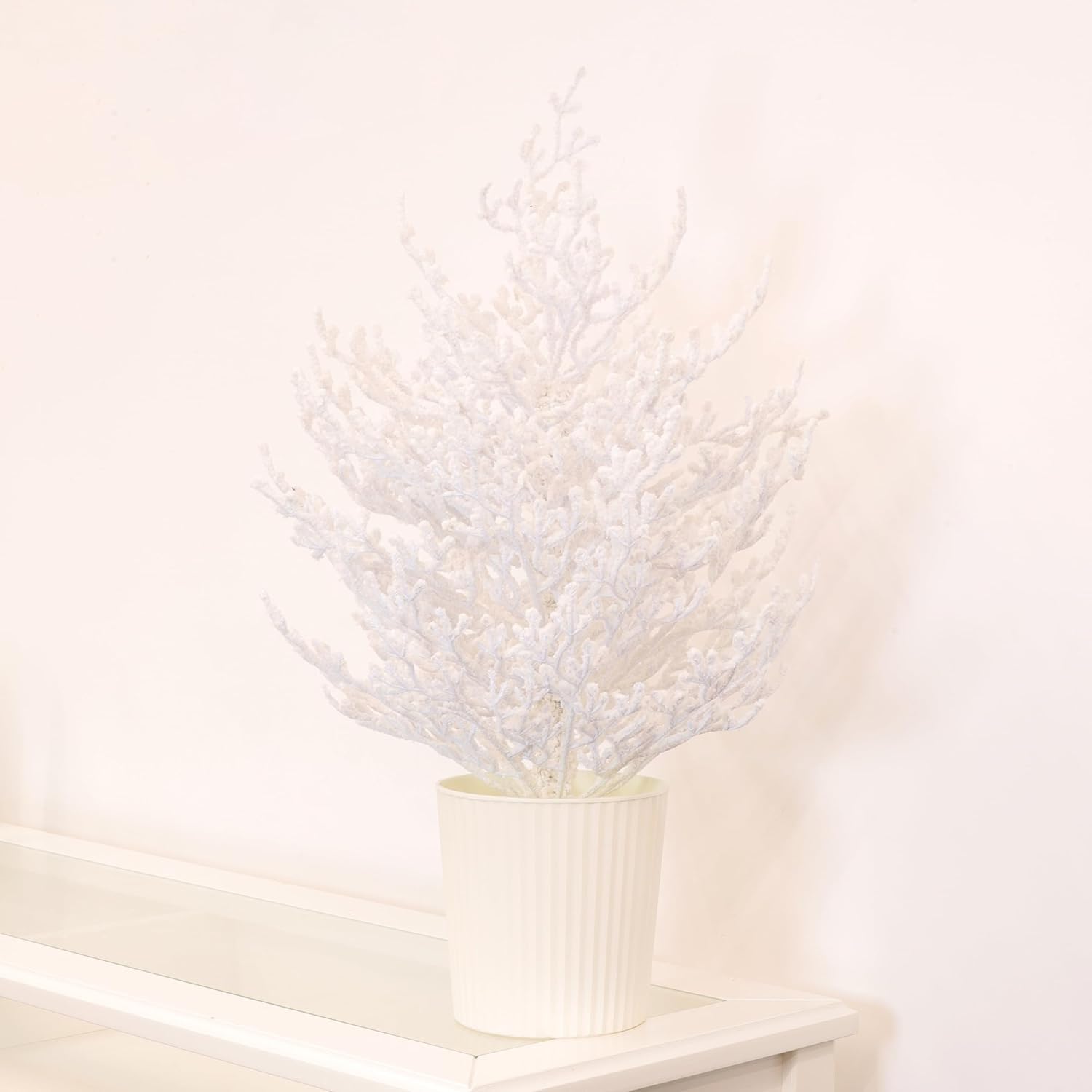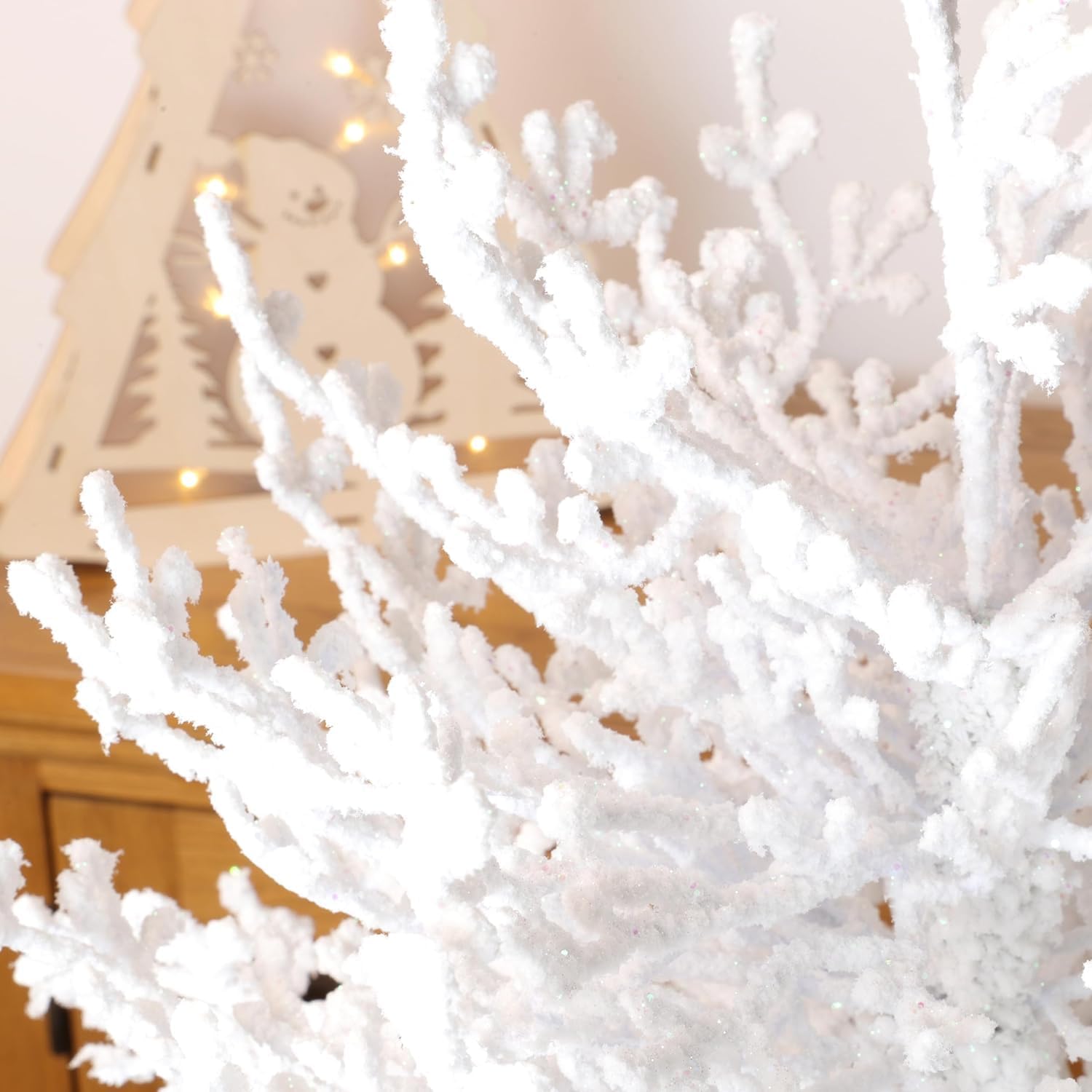 2ft (24″) White Glitter Flocked Twig Tree With Base – Tabletop Christmas Trees