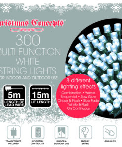 LED lights are extra bright, cooler than conventional bulbs, low voltage, energy efficient and will last for years. They are perfect for the decorating at the Christmas period. This light set can be used and will look fantastic either indoors or outdoors, but please ensure the transformer is plugged in indoors and kept away from any damp areas. The lights have an 8 function controller box which includes combination, sequential, chaser flashing, twinkle flashing, waves, slow glow, slow fade and steady on. The lead wire on the wire is approximately 20M with 15M of Lights. Designed and manufactured exclusively for Christmas Concepts Ltd.