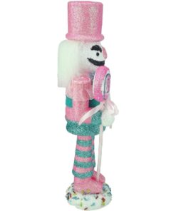 - The nutcracker holds a lollipop and stands atop a sprinkle and glittered covered base. This unique decoration would look stunning as the centre piece of your Christmas table or standing on your mantle piece or window sill!