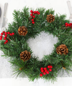 This beautiful Christmas wreath will look fabulous hung on your front door this Christmas. This Christmas wreath features pine cones and red berries for that lovely traditional Christmas feel. Place on the front door or anywhere around the house and let your friends and neighbours admire. The wreath measures 30cm all the way around. Designed and manufactured exclusively for Christmas Concepts Ltd.