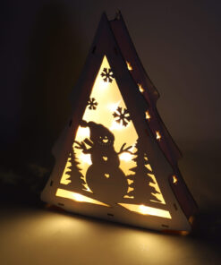 - The wooden box features a festive cut out design of a smiling Snowman surrounded by snowflakes and pine trees as well as star cut outs on the sides.