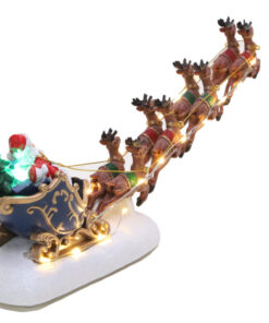 - The scene measures approximately 34cm from end to end and features Santa in his sleigh with all 8 reindeers.