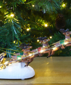 - This 34cm Santas sligh and reindeer decoration will add the finishing touches to your Christmas display perfectly this year.
