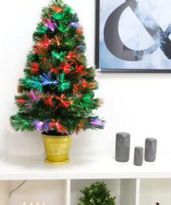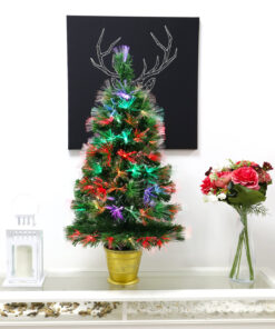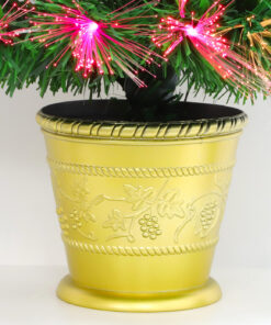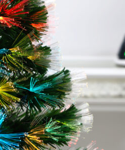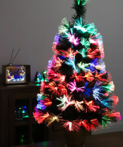 This is a stunning small Christmas tree for any house or workplace. Decoration is not needed as this tree looks lovely just as it is. It has green branches with Colour changing fibre optic led lights which give a stunning firework effect. The tree has a lovely gold pot base which is 16cm diameter. The tree girth is 45cm. Supplied with 3 pin transformer. 1.8m lead wire. Designed and manufactured by Christmas Concepts