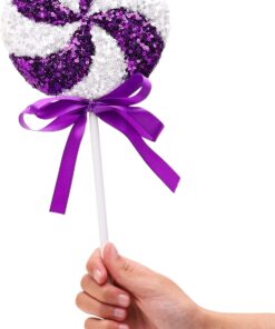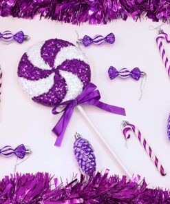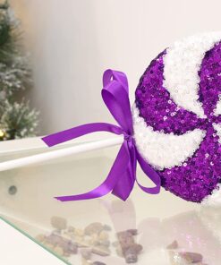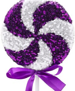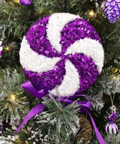 36cm Giant Sparkly Sequin Lollipop Christmas Decoration - Purple & White – Christmas Tree Ornaments