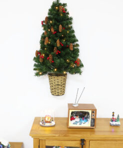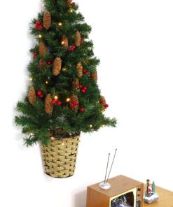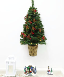 This beautiful tree will look stunning hanging on the wall in your home or office! The decorated tree features natural pine cones, red berries and warm white LED lights. It stands at 90cm tall and has a paper basket base with hanger. The tree operates with 3 x AA batteries (not included) and includes a timer function on the battery box.