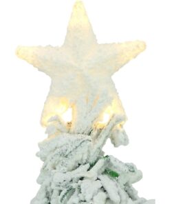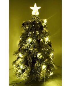 This beautiful tree will look stunning as a centre piece in your home or office! The fibre optic tree features heavily snow frosted tips and is already decorated with natural pine cones, red berries and an 11cm warm white LED star on top. The tree is lit with static warm white LED lights. It stands at 90cm tall and has a 15.4cm diameter white plastic pot base. An indoor transformer with 1.8m lead wire are also included with the tree.