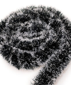Brighten up your Christmas with this beautiful Black & White Tinsel! Hang it from your Christmas tree or use it to decorate your home or office! This tinsel is the perfect accessory to finish off your Christmas display! The tinsel is 3m long and features both chunky and fine strands in black with white tips. Designed and manufactured exclusively for Christmas Concepts Ltd.