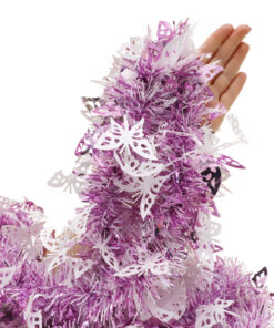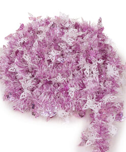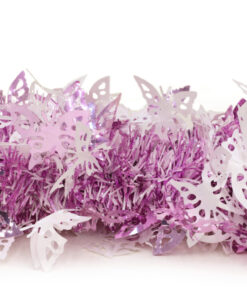 Brighten up your Christmas with this beautiful butterfly tinsel – hang it from your Christmas tree or use it to decorate your home or office! It would also add the perfect finishing touch to wedding or baby shower decorations! The tinsel is 3m long and features thin baby pink and white strands with pink and white butterflies scattered along the length. Designed and manufactured exclusively for Christmas Concepts Ltd.
