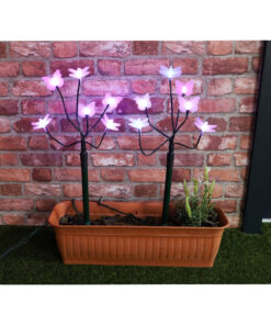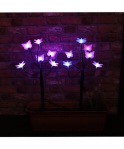 These colour changing garden stick lights have 24 led bulbs. There are 3 butterflies and 3 dragonflys on each stick,there are 4 sticks that are approx 17 inches high. They make excellent eyecatching decorations for your garden. They can be used to decorate for any occasion indoors or outdoors although the transfomer must be kept indoors. The sticks are 1m apart making the length of sticks approx 4m and the set has a lead wire of 10m. The actual led bulbs gently change colour so the pinks run into purple and they emit a lovely morphing effect,they are perfect for a summer barbaque or to give a garden a magical effect in Winter for Christmas.As you probably know led lights a much more energy efficient because they work of a transformer and are low voltage and the bulbs never need to be changed and have aminimum life expectancy of 10,000 hours.