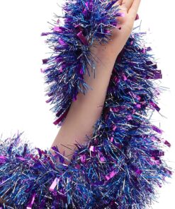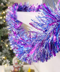 Christmas Concepts® 4 Metre Chunky/Fine Christmas Tinsel – Christmas Decoration Tinsel (Purple/Blue/Silver)