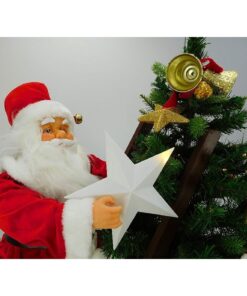 This unique Christmas tree will look amazing at home or in the workplace! It looks stunning just as it so no decoration is needed! It stands at 100cm tall and has a 60cm Santa climbing ladder giving the effect that Santa is decorating the tree. The tree is pre lit with 100 warm white led lights. Led lights are very bright, low voltage and energy efficient. Warm white is like the colour of an old style fairy light. The tree is beautifully decorated with parcels and has parcels at the base of the tree. The Christmas tree also features music with a sensor control. When you walk past the tree the music will start to play! This can be switched off! Designed and manufactured exclusively for Christmas Concepts Ltd.