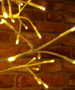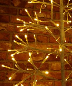 Create a beautiful winter wonderland scene with this LED starburst tree. The tree comes with white twig like branches containing 280 warm white static LEDs. Mains operated decoration with low energy bulbs and 5m of lead wire. Measures 4ft 9″ (1.5m) and comes complete with a high quality metal base. Suitable for indoor and outdoor displays.
