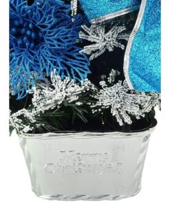 This beautiful tree will look stunning as a centre piece on your Christmas dinner table or on your office desk! The tree features 68 frosted tips decorated with various blue decorations including bows, glitter baubles, poinsettias and butterflies. It stands at 60cm tall and has a silver base. Perfect when you don’t have room for a large tree but still want that festive touch! Designed and manufactured exclusively for Christmas Concepts Ltd.