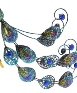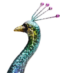 Brighten up your home with this stunning Peacock with trailing tail feathers! Made from metal, this large decoration is coloured in shimmery hues of blue, green, yellow, pink, orange and bronze with glittering blue jewels adorning the open tail and head feathers. The Peacock measures 94cm x 55cm x 48cm. Ideal decoration for indoor or outdoor garden use. This would look great on your garden patio all year round! Designed and manufactured exclusively for Christmas Concepts Ltd.