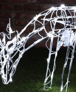 This pretty Christmas decoration will look stunning wherever you place it, be it at home or out in the garden. The reindeer doe decoration is decorated with ice white LED lights. Ice white is a bright white. LED lights are very bright, low voltage and energy efficient. This means that it does not cost as much as normal bulbs to run, and the bulbs do not get hot. The decoration has 10m connection cable. Suitable for indoor and outdoor use. Product measures 79 x 66 x 18CM. This product comes with a UK standard transformer and EU adaptor.