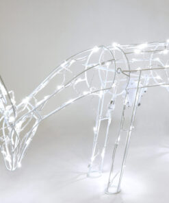 - The reindeer doe decoration is decorated with ice white LED lights. Ice white is a bright white.