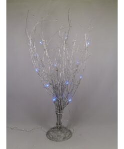 A beautiful silver wicker tree with blue led lights, this will be sure to brighten up your christmas or any special occasion, wedding, or it can even be used for everyday decor. It is suitable for indoor and outdoor use but the three pin plug must be kept indoors. The tree looks very stunning as the lights are very bright, led lights are energy efficient and low voltage to save you pennies on those ever rising electricity bills. A beautiful addition to Christmas. The wicker tree is flat and has a round base.