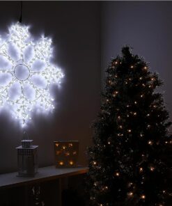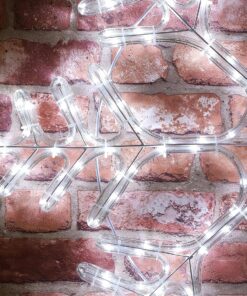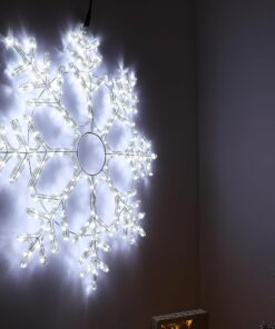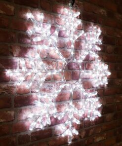 - The snowflake features 13m of rope lighting with 24 white LED lights per metre, including flashing bulbs – the LED lights are bright while also being low voltage and energy efficient.