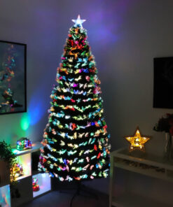 This is a stunning Christmas tree for any house or workplace. Decoration is not needed as this tree looks lovely just as it is. It has green branches with multi coloured led lights and fibre optics that give a stunning firework effect. The lights are at the end of the brances only. The tree has a foldable metal stand that measures 55cm. It also has a colour changing led tree top star. The tree girth is 100cm. Supplied with 3 pin transformer. 10m lead wire. Designed and manufactured by Christmas Concepts. Suitable for indoor and outdoor use.