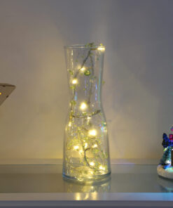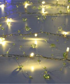 A gorgeous garland/ light set with 20 warm white LED lights. The garland has crystal ball like small and large beads throughout the garland. Very beautiful decoration which can be used as a garland on the wall, in the window, around flowers or around your Christmas tree. No wires as this is battery operated. LED lights are very bright, energy efficient and low voltage. Warm white led is a new colour for this year, it is more of a clear bulb than a bright white like an old fairy light colour, but is an led bulb which is much safer and uses far less power. These garlands are also perfect to decorate your wedding. The lights take 3 AA batteries, not included.