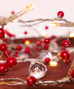 Christmas Concepts® Beaded Light Garland With Red Beads And 20 Warm White LED Lights – 2 Metre Length – Wedding – Christmas