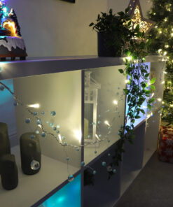 A gorgeous garland/ light set with 20 warm white LED lights. The garland has crystal ball like small and large beads throughout the garland. Very beautiful decoration which can be used as a garland on the wall, in the window, around flowers or around your Christmas tree. No wires as this is battery operated. LED lights are very bright, energy efficient and low voltage. Warm white led is a new colour for this year, it is more of a clear bulb than a bright white like an old fairy light colour, but is an led bulb which is much safer and uses far less power. These garlands are also perfect to decorate your wedding. The lights take 2 AA batteries, not included.