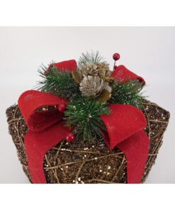 This gift box is very beautiful for the Christmas period. It is brown with red ribbon and festive decor. It is covered in glitter so it looks even more stunning. The parcel also has warm white led lights which are very bright, low voltage and energy efficient. The parcel measures approx 11″ x 11″ x 12″. Suitable for indoor and outdoor use.