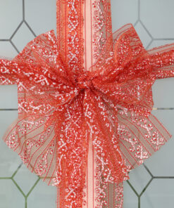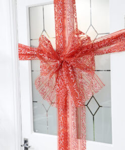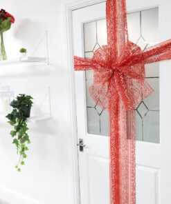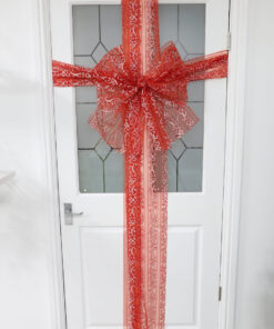 This Candy Cane organza fabric is perfect for making Christmas door bows. The Organza measures approximately 9M long and 40cm wide and has a sheer finish. Use this to decorate or make everything from Christmas door bows, Christmas trees, Christmas displays, Parties and can even be used to make bows for wedding chair covers and so much more. Designed and manufactured exclusively for Christmas Concepts Ltd. Instructions – What You’ll Need: Scissors Safety Pins or Stapler What to Do: 1. First, you want to create the perfect bow. Create this separately so that you can attach the fully tied piece to the door at the end. 2.Next you want to use the rest of the organza and start by posting the end over the top of your door, making sure the organza hits the bottom of the door on the front, and then post the remaining underneath the door, outwards. 3.Bring the organza up from the floor to the middle of your door, where your bow will be going. Take BOTH ends of the organza and cross them over. Imagine your tying a present up with ribbon. At this point your organza should have an ‘+’ in the middle of your door. 4.The two ends will now wrap around the width of your door. The side with your door handle on, wrap that end around the door handle to hold it tight while you do the next bit. Take the opposite end and post it through the hinge to the back of the door. 5.Untie the end that’s on your door handle and grab the end that is poking through the hinge – pull it all through to the back of the door. 6. Close your door and then do a knot in the centre of the door to keep it all in place. Cut off any excess, leaving a little bit hanging just to make it look a bit nicer. 7. Lastly, get your big bow and attach with pins or you can use a stapler. Fluff and arrange until you are happy with the overall look.