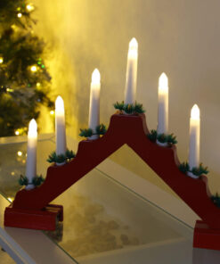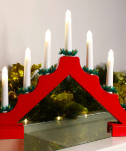 Christmas Concepts® Christmas Red Wooden Candle Bridge With Warm White LED Lights – Battery Operated