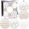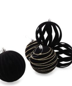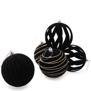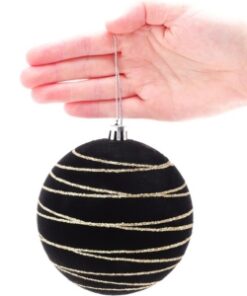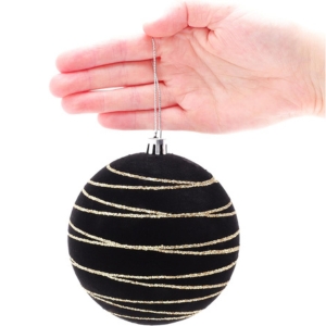 - Each bauble measures 100mm (4″) and comes in 3 assorted elegant designs, including velvet, velvet with glitter stripes and velvet swirl.