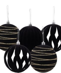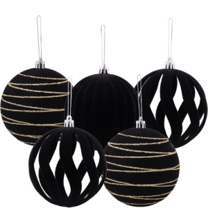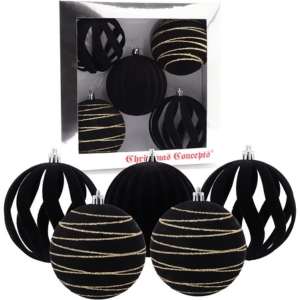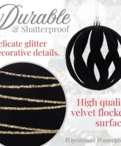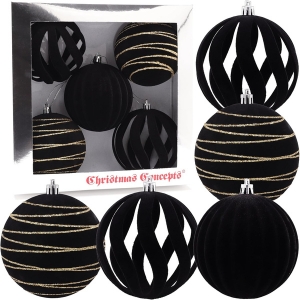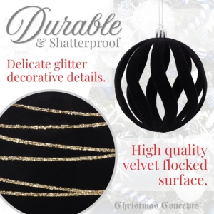 Christmas Concepts® Elegance Collection – Pack of 5-100mm (4″) Black Luxury Velvet & Glitter Decorated Large Baubles – Christmas Tree Hanging Decorations