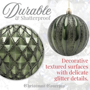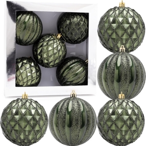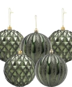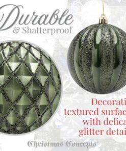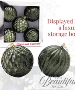 Christmas Concepts® Elegance Collection – Pack of 5-100mm (4″) Forrest Green Luxury Decorated Large Baubles – Christmas Tree Hanging Decorations