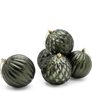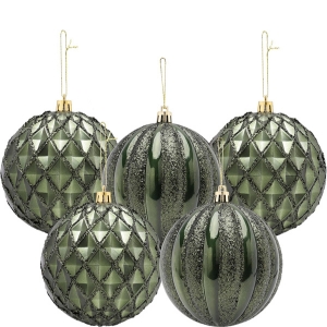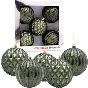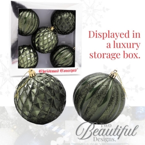 Christmas Concepts® Elegance Collection - Pack of 5-100mm (4") Forrest Green Luxury Decorated Large Baubles - Christmas Tree Hanging Decorations