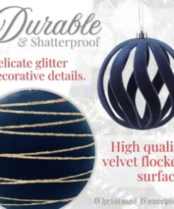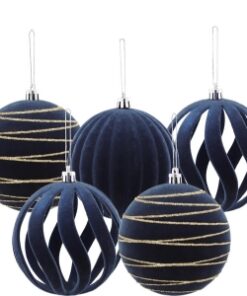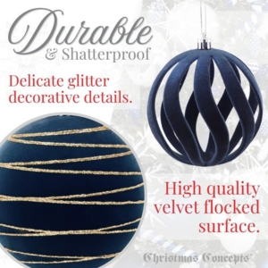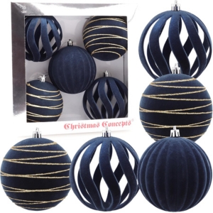 Christmas Concepts® Elegance Collection – Pack of 5-100mm (4″) Midnight Blue Luxury Velvet & Glitter Decorated Large Baubles – Christmas Tree Hanging Decorations