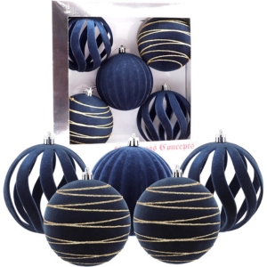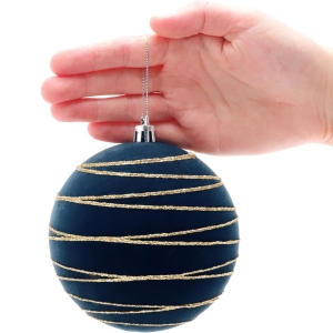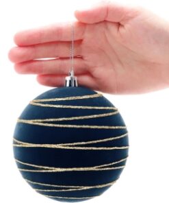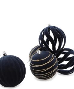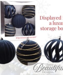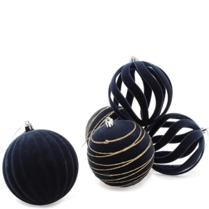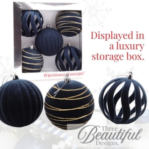 • Each bauble measures 100mm (4″) and comes in 3 assorted elegant designs, including velvet, velvet with glitter stripes and velvet swirl.