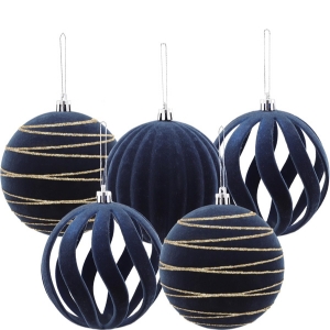 Christmas Concepts® Elegance Collection - Pack of 5-100mm (4") Midnight Blue Luxury Velvet & Glitter Decorated Large Baubles - Christmas Tree Hanging Decorations