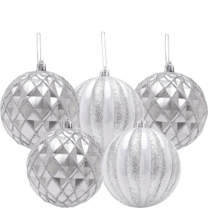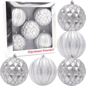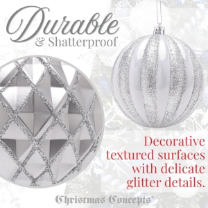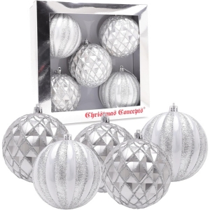 Christmas Concepts® Elegance Collection – Pack of 5-100mm (4″) Silver Luxury Decorated Large Baubles – Christmas Tree Hanging Decorations