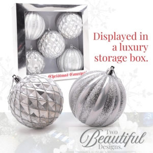 - The baubles come complete with a silver box which you can store your luxury baubles in year after year.