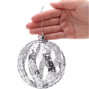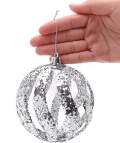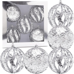 - Each bauble measures 100mm (4″) and comes in 2 assorted elegant designs, all glitter and glitter swirl.