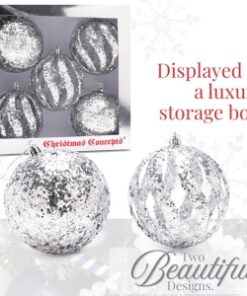 - The baubles come complete with a silver box which you can store your luxury baubles in year after year.