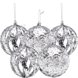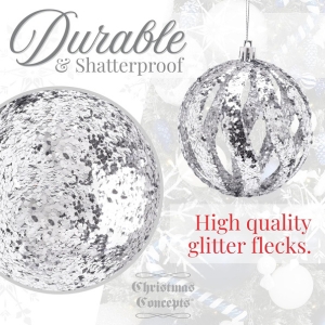 Christmas Concepts® Elegance Collection – Pack of 5-100mm (4″) Silver Luxury Glitter Baubles – Christmas Tree Hanging Decorations