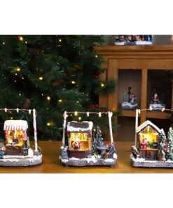- Exclusive market stall design with attached figurines, frosted trees and warming lights for a traditional Christmas feel