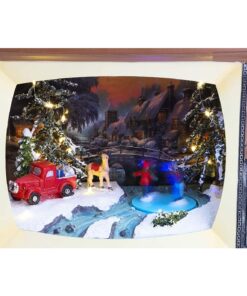 - Features Rotating Ice Skating Figures With Pick Up Truck & Reindeer
