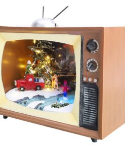 This retro Television scene is the perfect Christmas Decoration to add to your display this year. The televsion scene measures approximately 9.5 Inches and requires 3 x AAA batteries which are not included. The traditional Christmas scene inside the television brings the festive feel to your home. Finished off to the highest standard with rotating ice skating figures and LED Lights. Designed and manufactured exclusively for Christmas Concepts Ltd