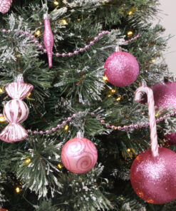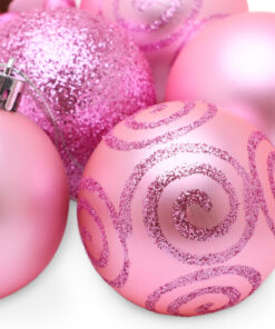These are fantastic for decorating any tree. They will be sure to brighten the tree up. They can also be used to make a garland by threading a piece of string through the baubles and hanging up in the window or on the wall. There are 10 pink baubles in total, they are assorted glitter, matt, swirl and shiny. They have a silver top for the thread, thread not included.