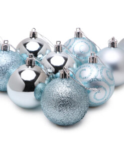 These beautiful shatterproof baubles are sure to brighten up any Christmas tree! They can also be used to make a garland by threading string or ribbon through the top and hanging them up in the window, from the mantle piece or on the wall. This pack contains 10 ice blue baubles in total, including an assortment of glitter, matte, shiny and glitter swirl designs. Each bauble measures approximately 6cm and comes with a silver top with a silver string loop attached. Designed and manufactured exclusively for Christmas Concepts Ltd.