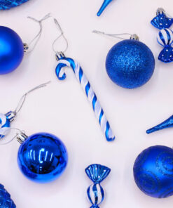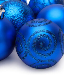 - This pack contains 10 royal blue baubles in total, including an assortment of glitter, matte, shiny and glitter swirl designs.