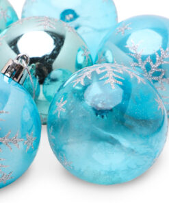 These beautiful shatterproof baubles are sure to brighten up any Christmas tree! They can also be used to make a garland by threading string or ribbon through the top and hanging them up in the window, from the mantle piece or on the wall. This pack contains 10 ice blue baubles in total, including an assortment of shiny, pearl and transparent designs each with a silver glitter snowflake. Each bauble measures approximately 6cm and comes with a silver top with a silver string loop attached. Designed and manufactured exclusively for Christmas Concepts Ltd.